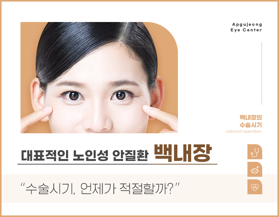 위와 같은 증상을 겪고 안과에 내원하신 후 백내장 진단을 받게 되면 많은 분들이 적절한 수술 시기는 언제인지 궁금해 하시는데요. 백내장은 진행성 안질환이기 때문에 초기일 경우 약물로 진행속도를 늦추는 보존적 치료법으로 시작하고, 중기 이상으로 진행되면 혼탁해진 수정체를 제거하고, 기존 수정체 기능을 대신할 인공수정체를 삽입하는 수술적인 치료를 선택할 수 있습니다.