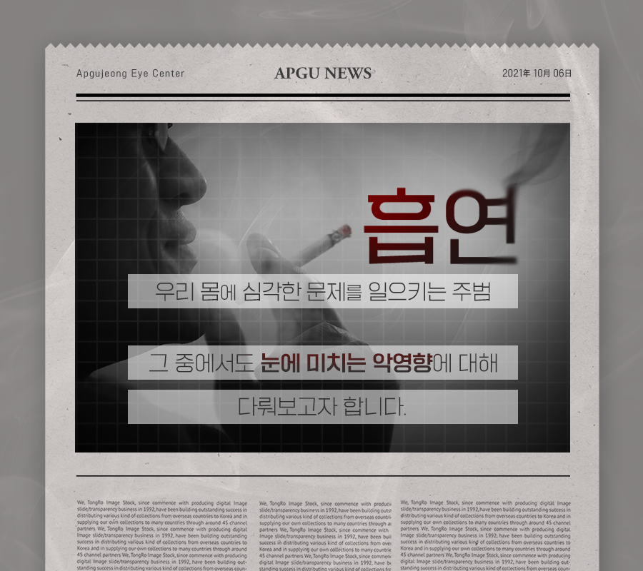 그래서 오늘은 흡연이 눈 건강에 미치는 악영향에 대해 알아보는 시간을 가져보도록 하겠습니다.