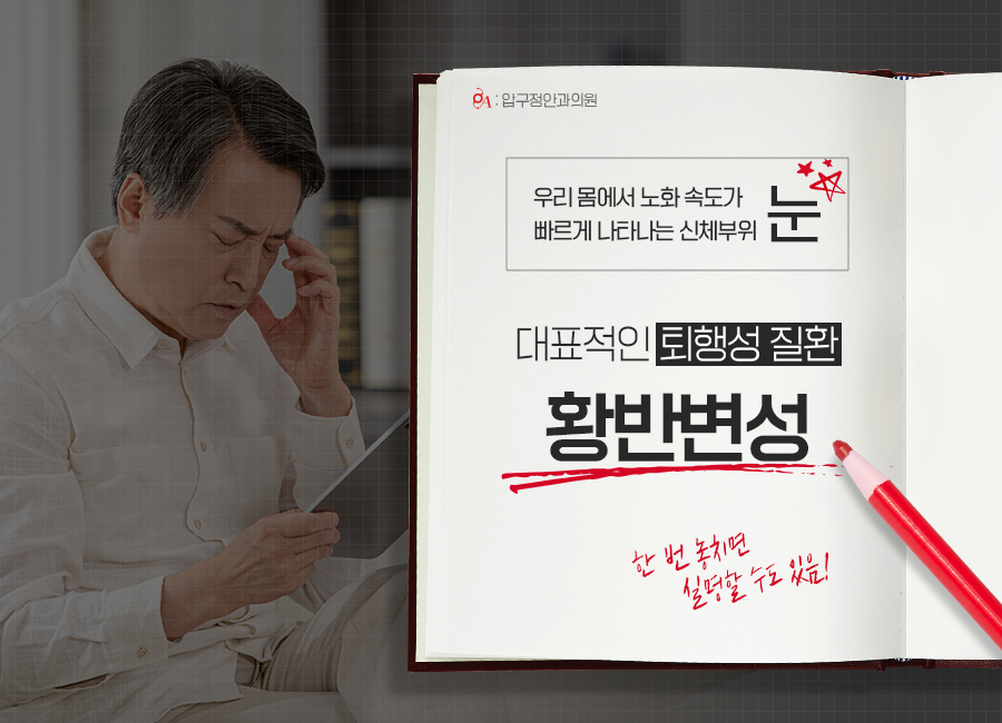 사물을 볼 수 있게 도와주는 우리의 눈은 온종일 사용하다 보니 그만큼 노화가 빨리 찾아오곤 합니다. 이처럼 나이가 들면 전신에 걸쳐 퇴행성 변화를 겪게 되는데, 특히 눈은