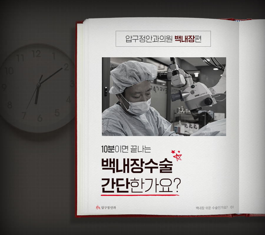 뿐만 아니라, 만족도 높은 수술 결과를 위해서는 수술 전 눈 상태를 정확하게 파악하는 것은 매우 중요한데요. 이처럼 10분만에 끝나는 백내장 수술이 간단하다고 생각하실 수 있으나 결코 간단하지만은 않은 수술이라는 사실을 잊지 마세요!
