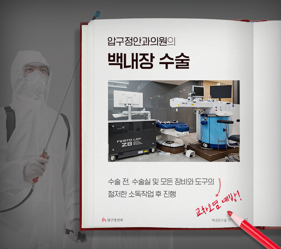 저희 압구정안과의원에서는 이러한 논란과는 무관하게 수술 전, 수술실을 비롯한 수술에 사용되는 모든 장비와 도구들을 철저히 소독하는 작업을 거친 후 수술을 진행하고 있습니다.