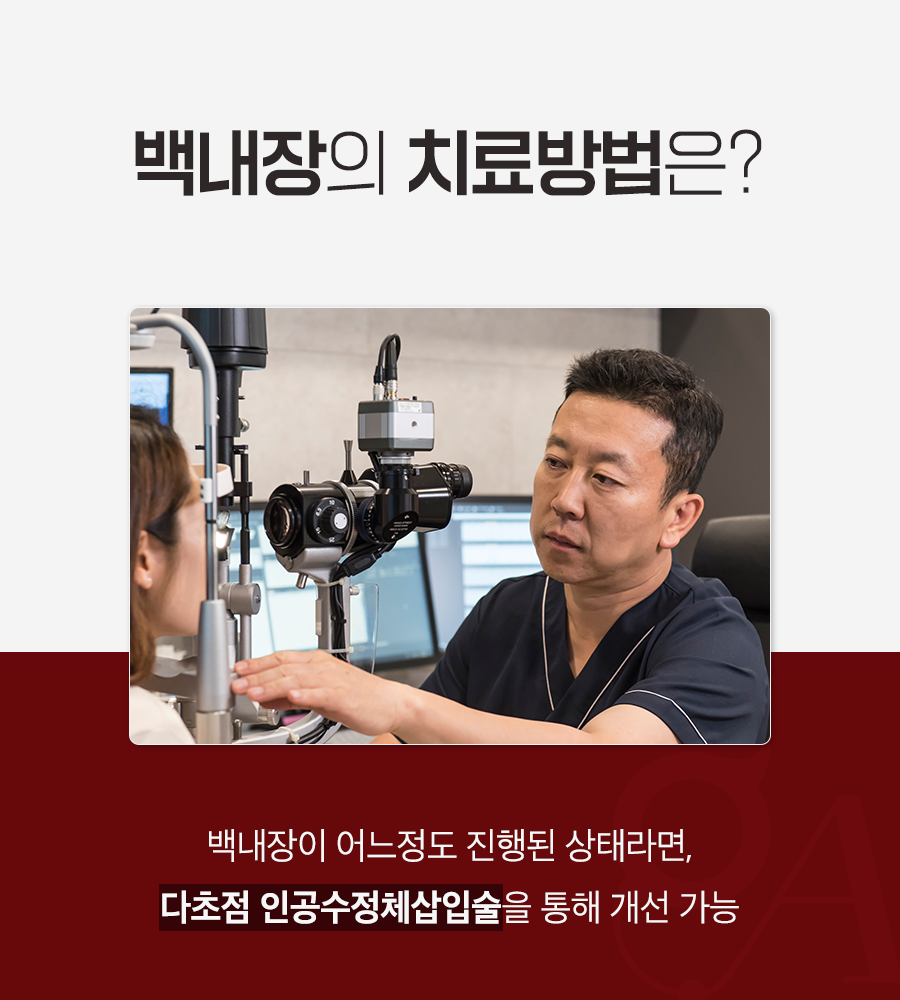 백내장은 초기에 약물치료로 질환의 진행 속도를 어느정도 지연시킬 수 있습니다. 하지만 수정체의 혼탁 정도가 심해진다면 인공수정체를 넣는 수술을 진행하게 되는데요.