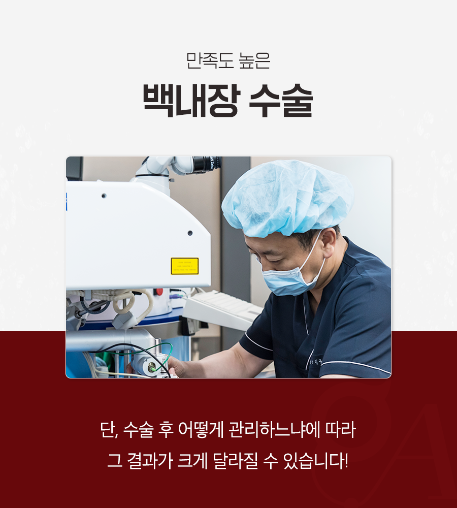 만족도가 높은 백내장 수술인 것은 맞지만, 백내장수술 후 관리를 제대로 하지 못한다면 교정시력이 원하는 만큼 나오지 않거나 부작용 등 문제가 발생할 수 있어 주의해야 하는데요.
