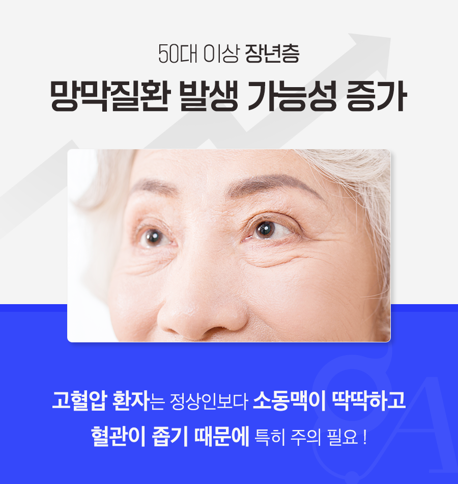 중년기를 넘어 장년층에 접어들기 시작하는 50대부터는 황반변성이나 망막혈관폐쇄 등 주요 망막 질환이 발생할 가능성이 증가하면서 주의가 필요한데요. 특히 고혈압이 있다면 더 많은 주의가 필요합니다.