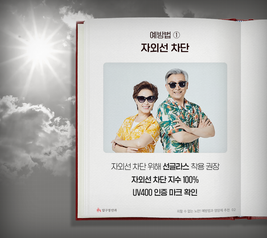 자외선은 눈으로 침투해 활성산소를 발생시켜 수정체를 손상시키는데요. 이로 인해 노화가 앞당겨지며, 노인성 백내장이나 황반변성, 광각막염 등을 비롯한 각종 안질환을 유발하기도 합니다.