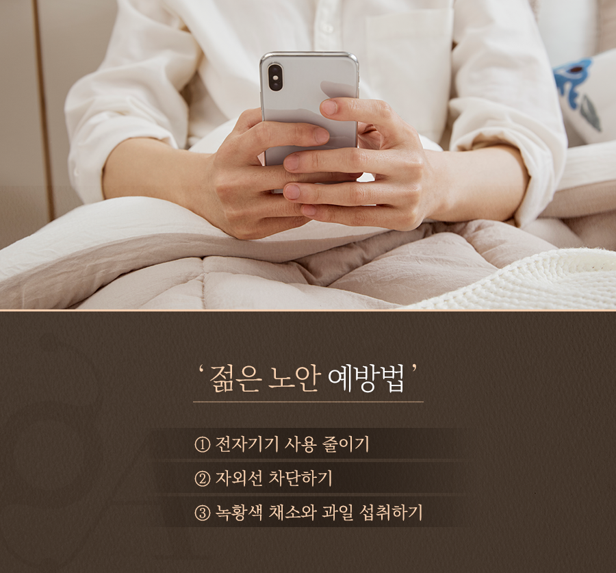 젊은 노안 원인으로 가장 크게 장시간 전자기기 사용이 꼽히고 있는 만큼 전자기기 사용 시간을 줄여주는 것이 가장 좋습니다.