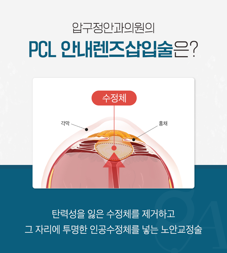 오늘은 다양한 노안교정술 중에서도 PCL 안내렌즈삽입술에 대해 소개해 드리도록 하겠습니다.