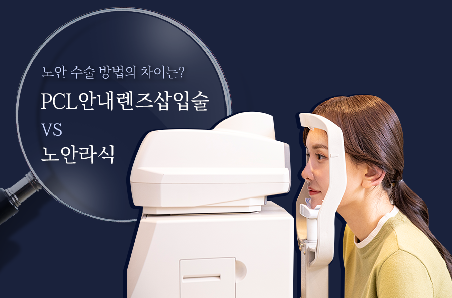 의학기술의 발달로 최근 다양한 노안 수술이 등장하고 있습니다. 오늘은 다양한 노안 수술 방법들 중에서도 PCL안내렌즈삽입술과 노안라식을 비교해보는 시간을 갖도록 하겠습니다.