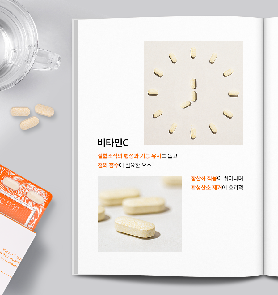 식약처에 따르면 비타민C는 결합조직의 형성과 기능 유지를 도와주고, 철의 흡수에 필요한 요소라고 하는데요. 또 항산화 작용을 하여 활성산소로부터 세포를 보호하는데 꼭 필요하다고 합니다.