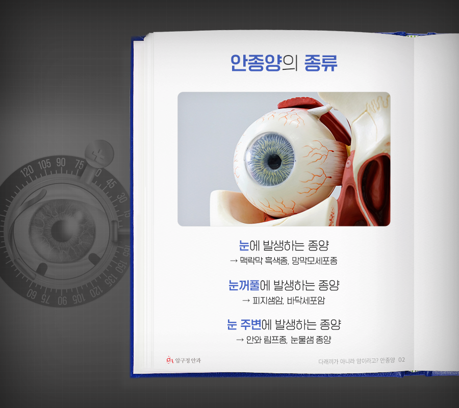 ‘안암’으로도 알려져 있는 안종양은 눈과 눈 주변에 발생하는 종양을 의미하는데요. 안종양의 정확한 원인은 알려져 있지 않지만, 불을 끈 채 스마트폰을 보는 습관으로 인해 발생하기도 합니다. 이 안종양은 눈 자체에 발생하는 종양, 눈꺼풀에 발생하는 종양, 눈 주변(안와)에 발생하는 종양 세 가지로 구분할 수 있습니다.