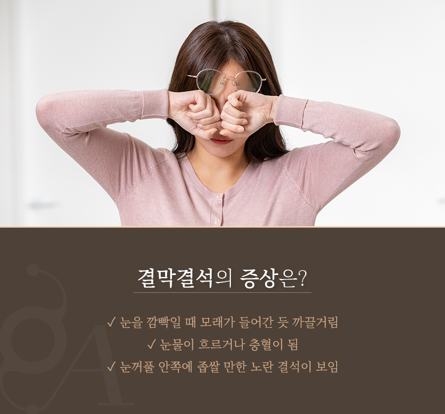 이처럼 결석이 있는 상태에서 눈을 비비면 결석으로 인해 각막에 상처가 날 수 있으며, 각막염으로 이어질 위험이 있기 때문에 빠른 시일 내에 가까운 안과를 방문해 치료를 받는 것이 중요합니다.