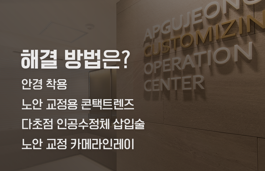눈의 노화. 빠르면 30대, 평균적으로 40대면 시작됩니다. 눈이 침침하다는 말에 굉장한 공감을 할 수 있는 증상이 시작되는데요. 가까운 것은 잘 안보여서 멀리두고 봐야하고 비교적 먼것은 선명하게 보입니다. 신체 기관의 노화, 어쩌면 매우 당연해서 더욱 거부하고 싶은 것일지도 모릅니다.