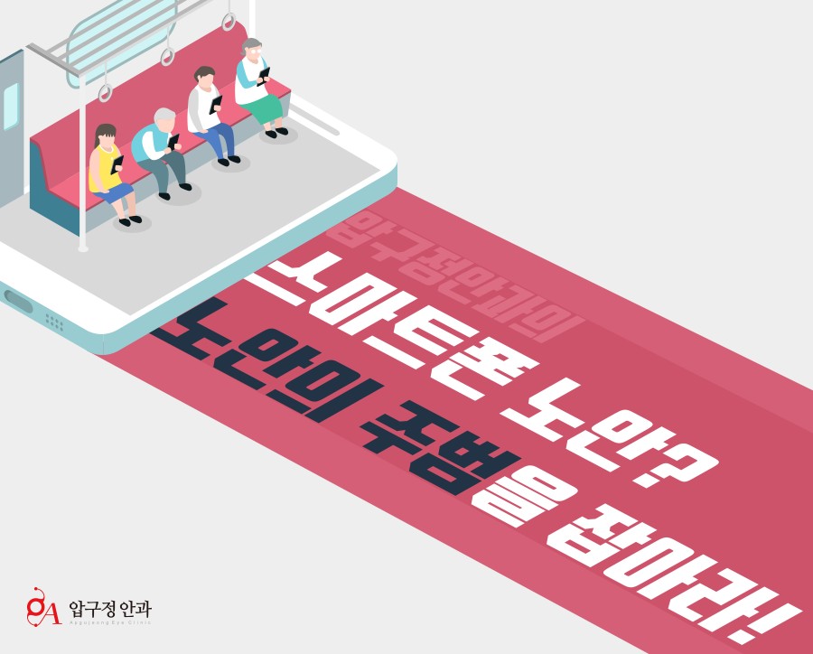 잠깐! 혹시 고개를 숙인 채 스마트폰 화면을 오랫동안 바라보고 계시진 않나요? 잘못된 자세로 스마트폰을 하는 습관은 노안을 빠르게 진행시킬 수 있습니다. 심지어는 젊은 사람들에게서도 노안 증세를 보이는 사람이 늘고 있죠. 바로 노안의 주범 스마트폰! 오늘은 노안의 주범 중 하나인 스마트폰에 대해 알려드리겠습니다.